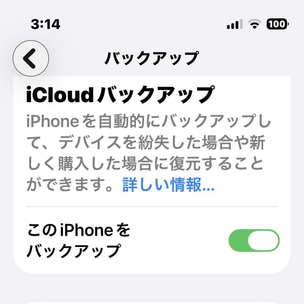 iCloudバックアップを再び有能にする