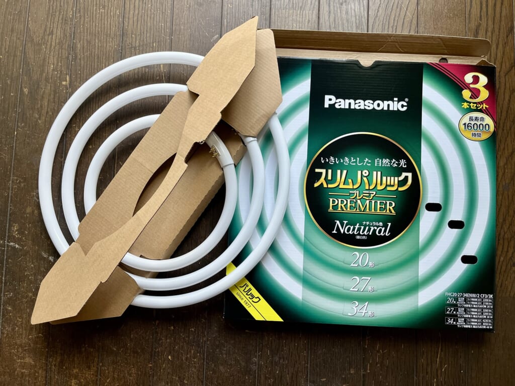 円形スリムラインの20W・27W・34Wの3本セットが500円引きのクーポンを使って6,000円ちょっとでした。